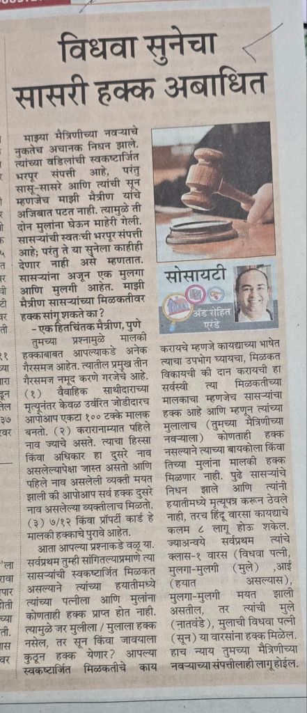 *****वारसा हक्क-उपयुक्त माहिती– सौजन्य महाराष्ट्र टाइम्स 5.11.25