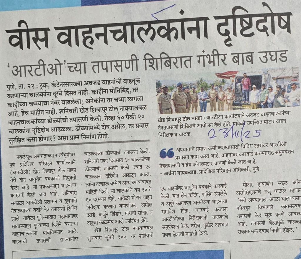 दृष्टिदोष– वाहनचालकांना वेळोवेळी तपासणी करून घेणे आवश्यक – सौजन्य सकाळ