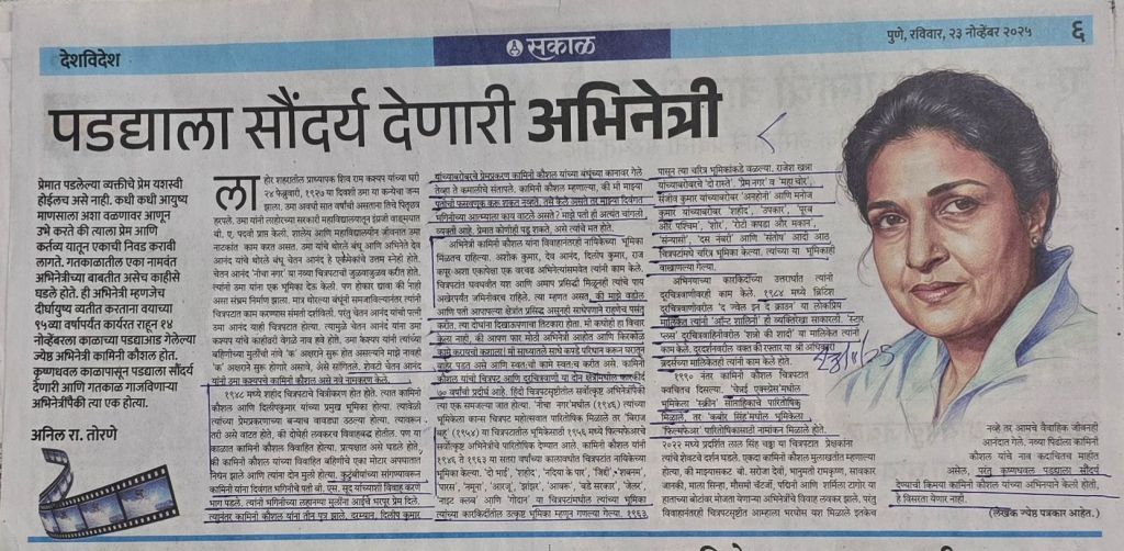 Kamini Kaushal–the actress of yesteryears — some facts worth knowing — Courtesy Sakal