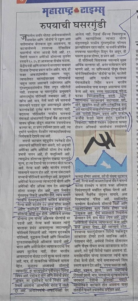 रुपया का घसरत आहे व त्याचे परिणाम काय? सौजन्य महाराष्ट्र टाइम्स