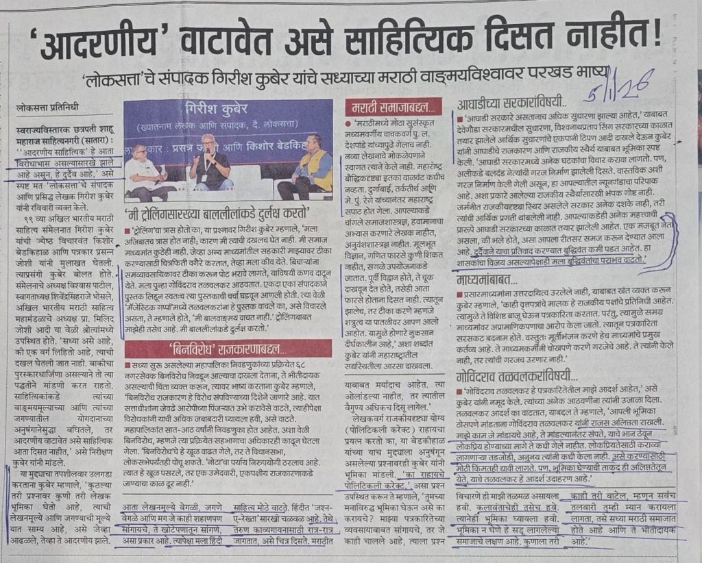 लोकसत्ता संपादक श्री गिरीश कुबेर यांची मुलाखत — विषय समजून घेण्यासारखे — सौजन्य लोकसत्ता