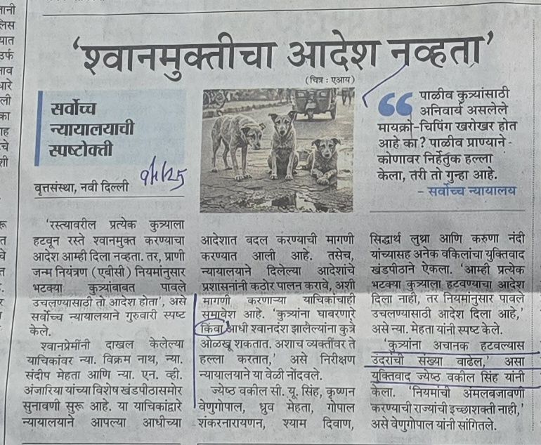 श्वान मुक्तीबाबत –सुप्रीम कोर्टापुढे प्रकरण सुनावणी साठी आहे –सुप्रीम कोर्टाचे म्हणणे समजून घेण्यासारखे– सौजन्य लोकसत्ता