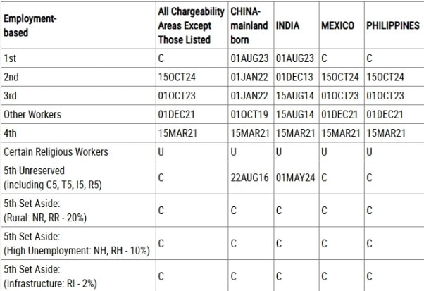 B. DATES FOR FILING OF EMPLOYMENT-BASED VISA APPLICATIONS