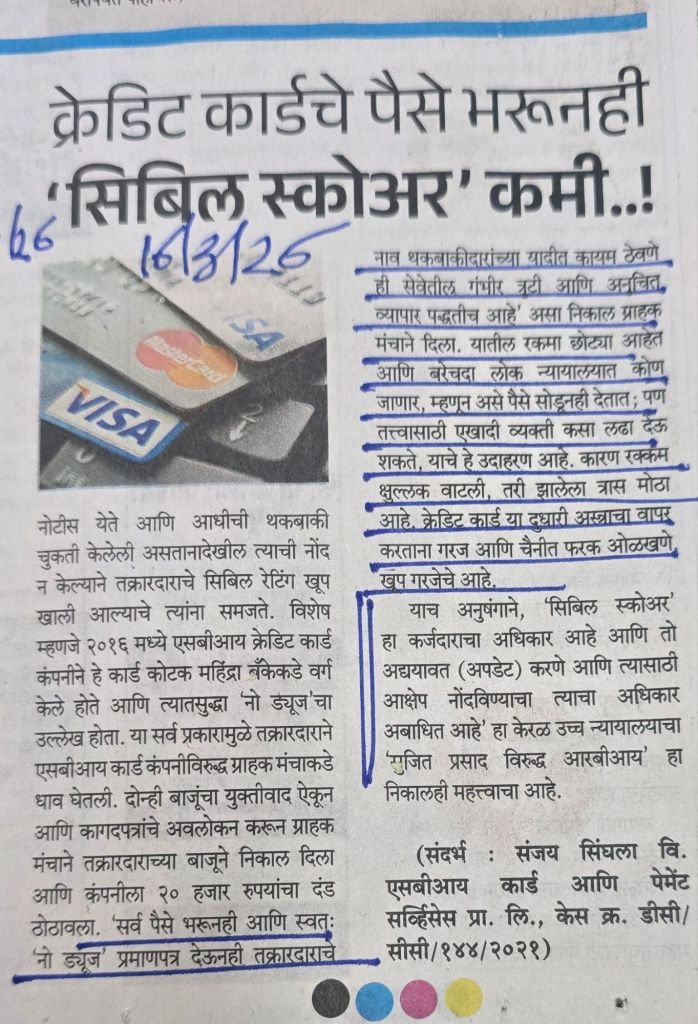 सिबिल स्कोअर बाबत– ग्राहकांचे हक्क– समजून घेणे गरजेचे– बातमी सौजन्य सकाळ