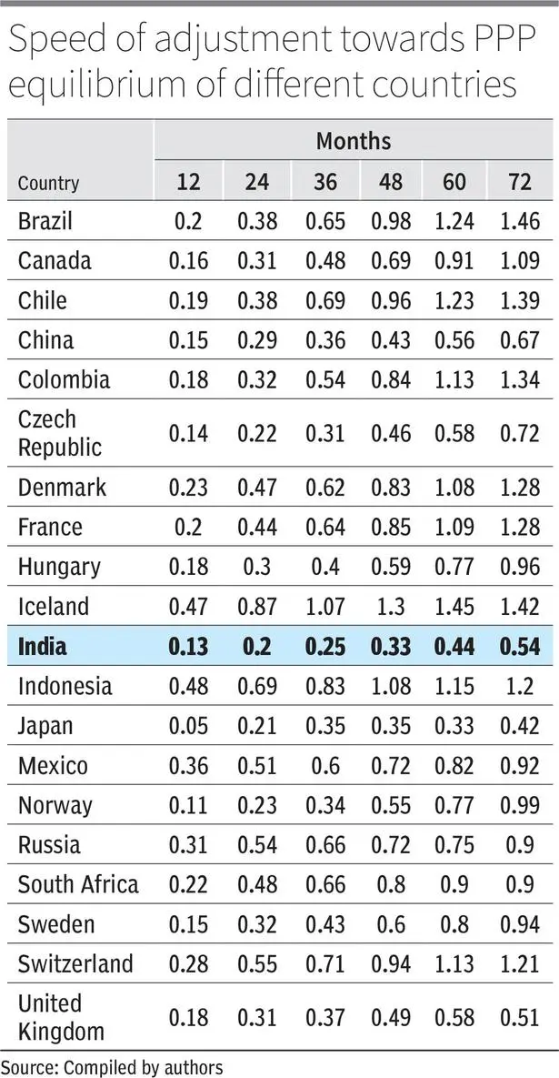 The key nuance is speed: India’s adjustment towards PPP is slow (as shown in the Figure), with a half-life of more than five years, meaning only half of any misalignment typically closes over that horizon.