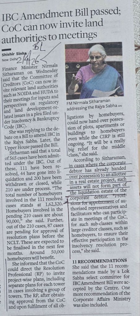 Amendment bill passed [2] Among others –It caters to home buyers interests — Courtesy BL