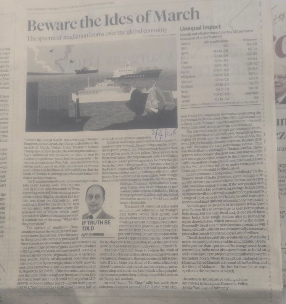 Russia could be a big winner –[2] it will benefit from higher oil prices and the removal of sanctions [3] for every $ 20 per barrel increase in oil prices, Russia’s GDP growth increases by 1.4-2 percentage points — Article by Ajay Chhibber– BS
