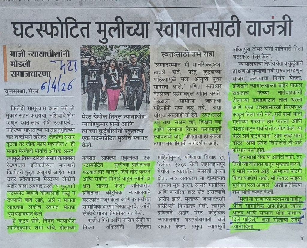 घटस्फोटित मुलीचे स्वागत का आणि कशासाठी आणि कसे केले ते माहित करुन घेण्यासारखे- सौजन्य महाराष्ट्र टाइम्स