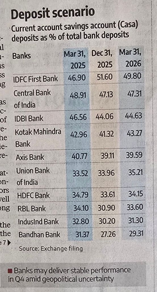 CASA – the dear ratio to Banks — Chart Courtesy BS