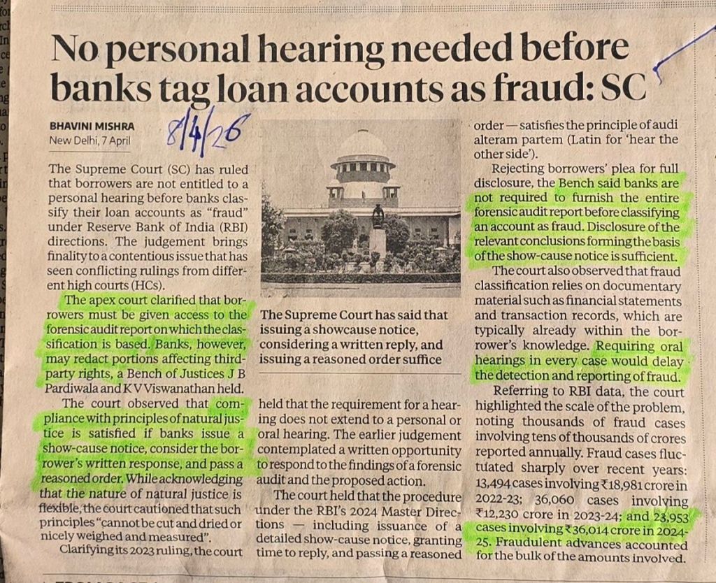 But SC clarified that the borrowers need to be given access to the forensic audit report on which the classification [ fraud ] is made — Courtesy BS