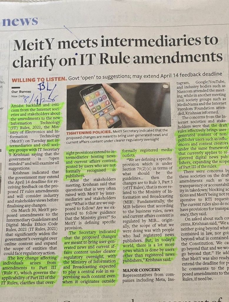 The issue is — apprehension from companies including Meta-Instagram -Google-YouTube [2] They aver — the draft rules– effectively–puts non publisher users such as influencers and content creators under the same framework that currently applies to registered digital news publishers– Courtesy BusinessLine