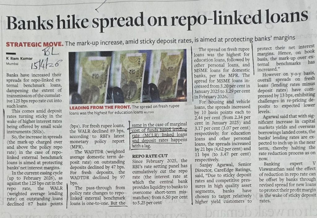 Banks — apprehensive of falling margins–hike spread on repo linked loans — Courtesy BusinessLine
