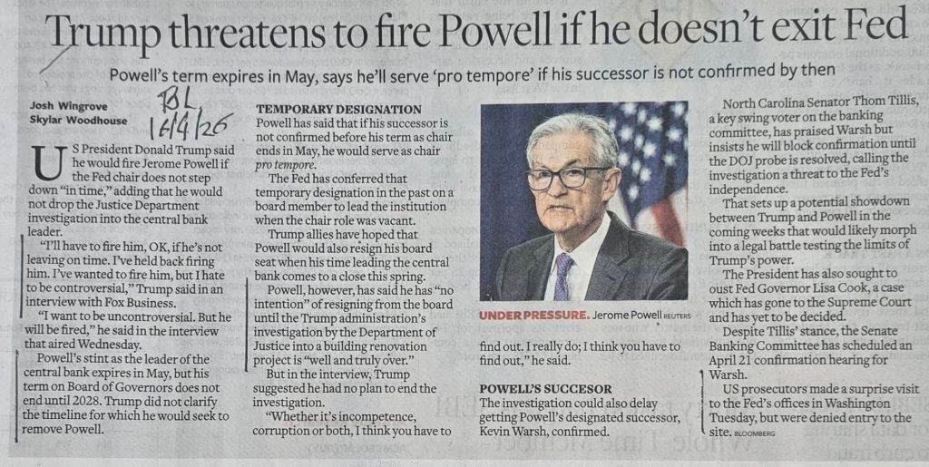 While Mr Powell’s stint as leader of the central bank expires in May [2026], his term on Board of Directors does not end until 2028– Courtesy BusinessLine