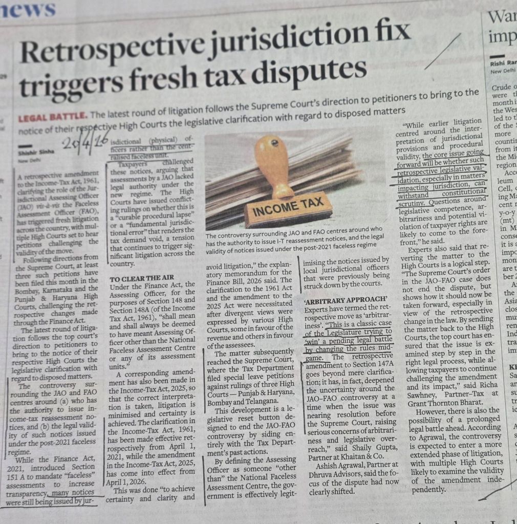 Who has the authority to issue tax notices ? [2] Section 151A – mandates ” faceless ” assessments, but many notices are still being issued by jurisdictional [physical] officers rather than the centralized faceless unit [3] Against this background, the tax department has now defined [ Section 147 A] Assessing Officer as someone other than the National Faceless Assessment Center– [4] and that has a retrospective effect [5] Constitutional scrutiny of this retrospective amendment– relating to jurisdiction — is likely to be tested in various high courts — Courtesy BusinessLine